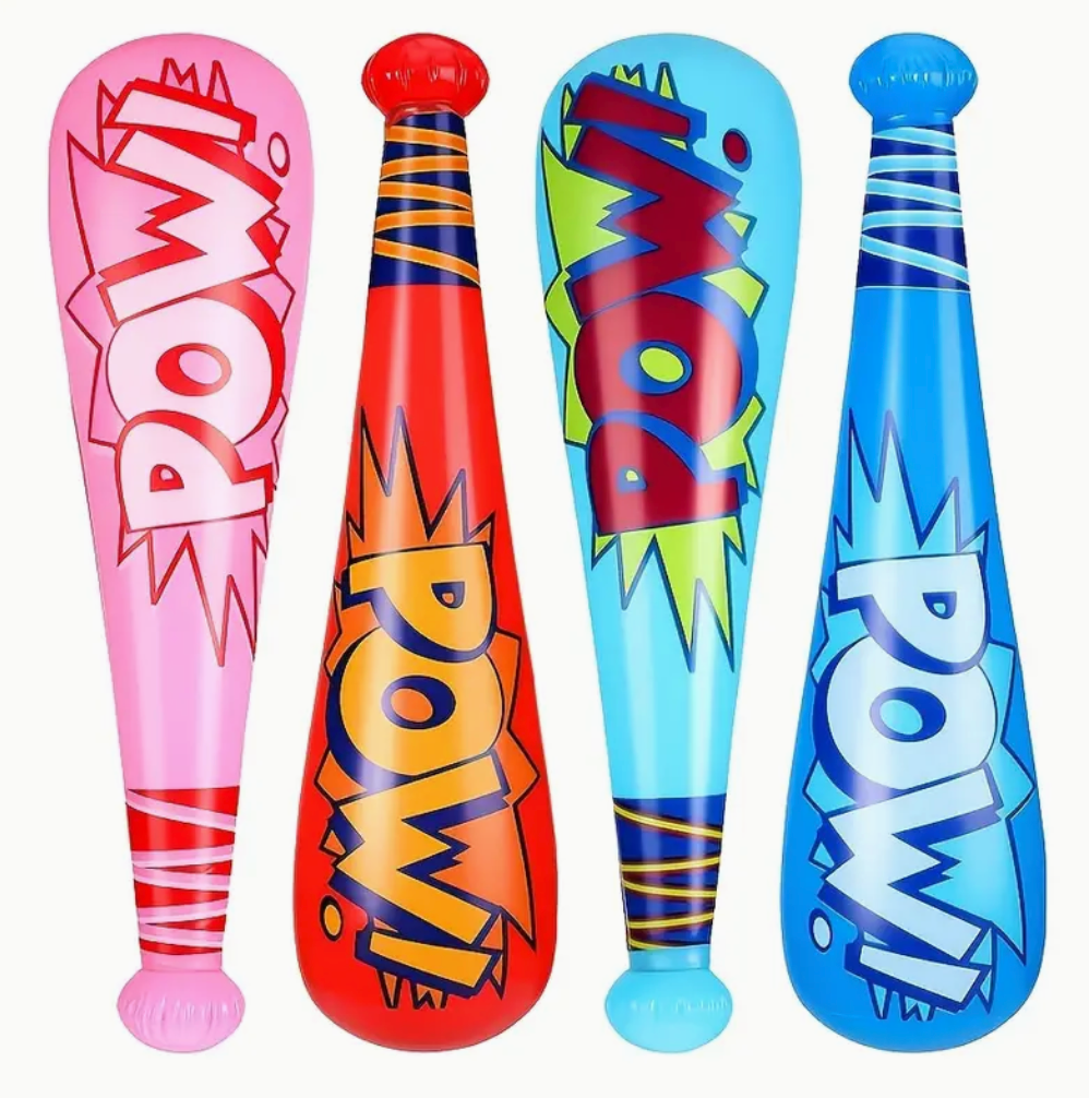 Leichter, aufblasbarer Spielschläger im bunten Comic-Design mit „POW!“-Aufdruck. Perfekt für Partys, Spiele oder als lustiges Accessoire. Aus strapazierfähigem Kunststoff, sicher und weich – ideal für Kinder und Erwachsene.