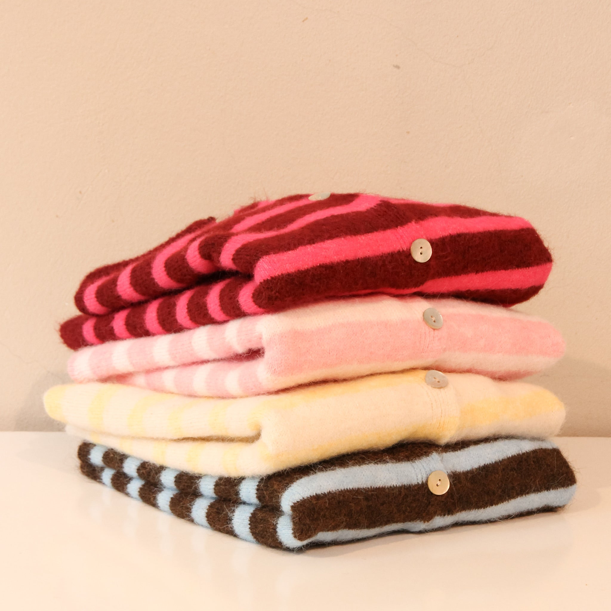 Wunderschöne gestreifte Strickjacke in tollen, knalligen Farben. Perfekt für alle Jahreszeiten.